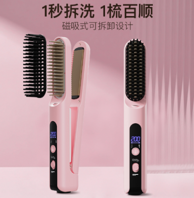 2-in-1 Professional Hair Straightening Brush – Magnetic Detachable Design with LCD Display for Frizz-Free Hair