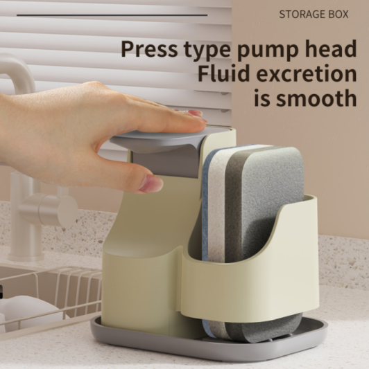2-in-1 Kitchen Soap Dispenser with Sponge Holder | Press-Type Pump for Dish Soap