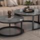 2-Piece Nesting Coffee Table Set with Faux Marble Top and Black Metal Base