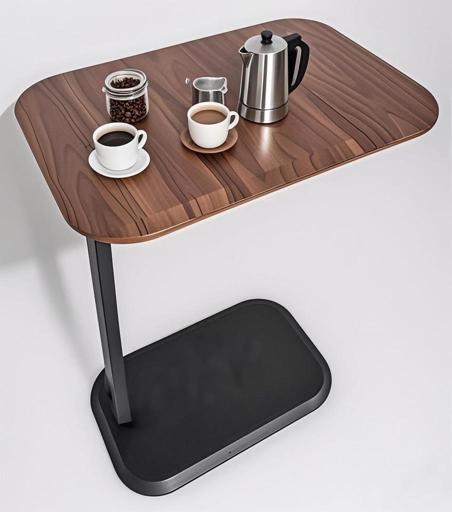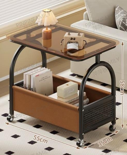 Modern Luxury Rolling Side Table with Smoked Acrylic Top and Faux Leather Storage Basket – Mobile End Table & Nightstan
