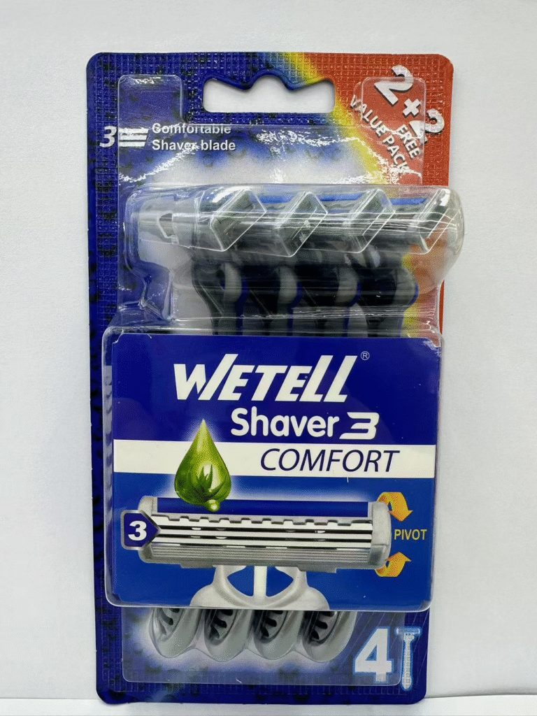 WETELL Shaver 3 Comfort – 3-Blade Disposable Razors with Pivoting Head and Comfort Strip – Value Pack (4-Count)