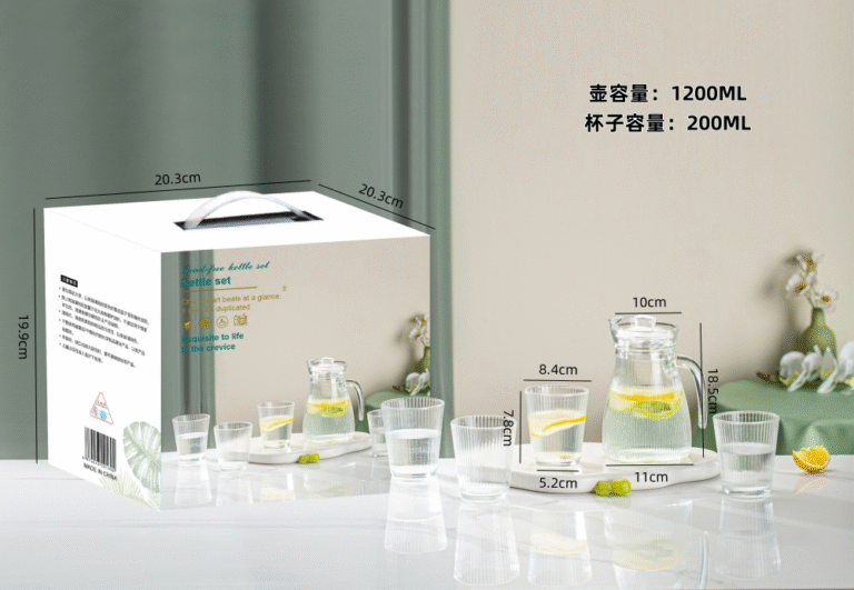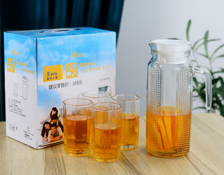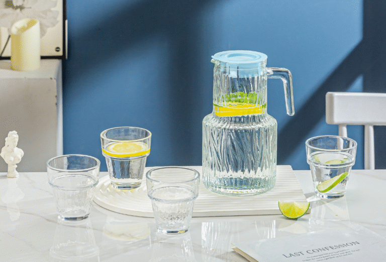 5-Piece Lead-Free Glass Water Pitcher and Tumbler Set with Ribbed Design – 1000ml Carafe and 220ml Drinking Glasses