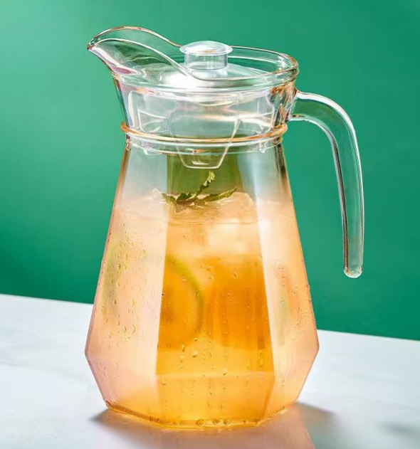 Geometric Glass Pitcher with Lid – 1100ml Modern Iced Tea Carafe for Water, Juice, and Sangria