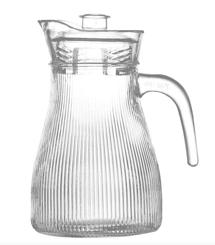 Ribbed Glass Water Pitcher with Lid – 1200ml Heat-Resistant Carafe for Hot & Cold Drinks