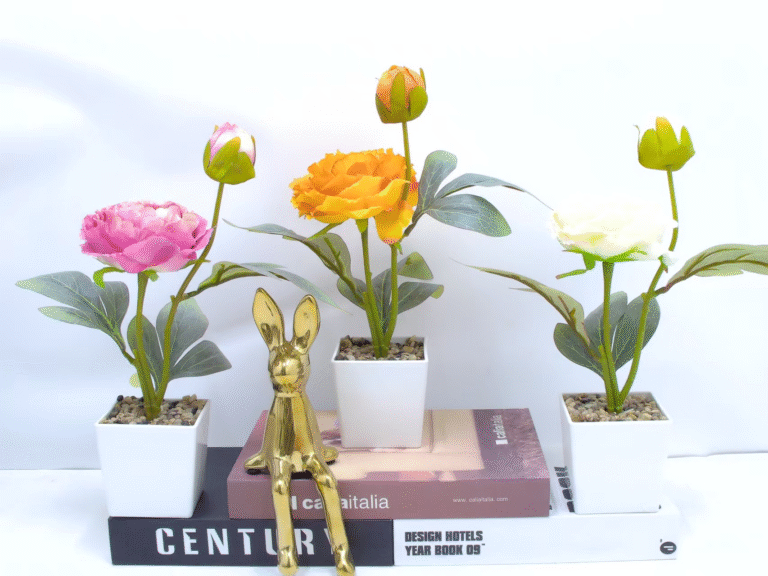 Realistic Peony Artificial Flower Potted Plant | Faux Silk Home and Office Decor