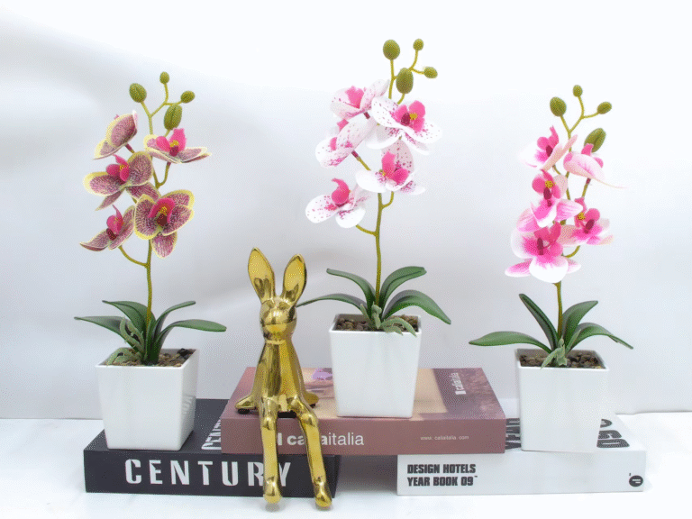 Realistic Potted Orchid Artificial Flower | Faux Phalaenopsis for Home and Office Decor