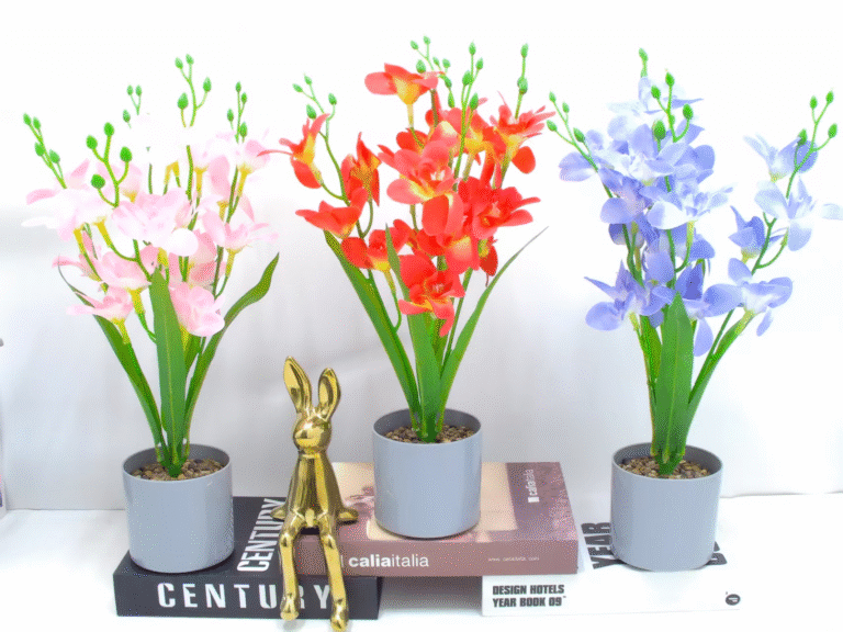Realistic Freesia Artificial Potted Flower | Faux Silk Home and Office Decor