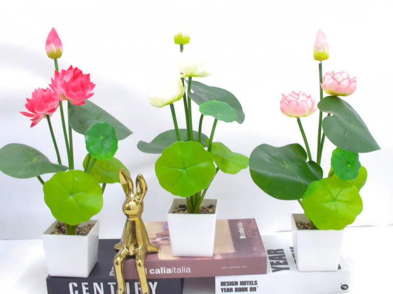 Realistic Potted Artificial Lotus Flowers | Faux Water Lily Desk Decor