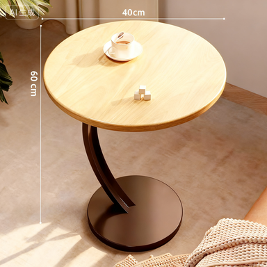 Scandinavian Style Round Light Wood Side Table with Curved Dark Metal Base, 60cm Minimalist Accent End Table