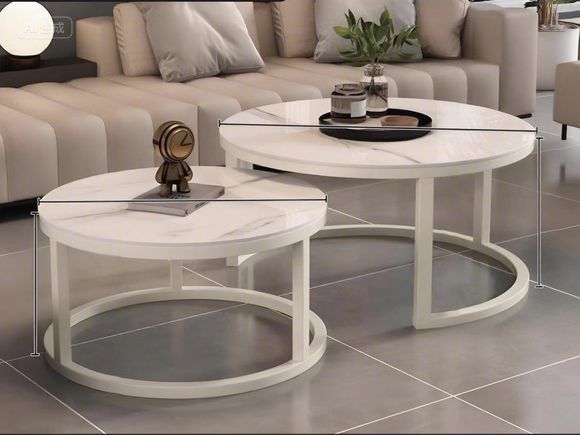 White Faux Marble Nesting Coffee Table Set with White Metal Base