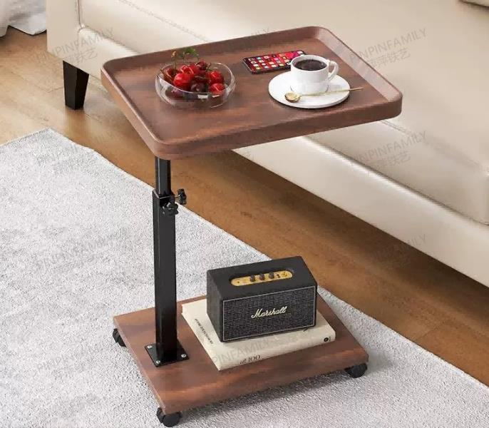 Adjustable Height Mobile C-Shaped End Table with Rolling Casters