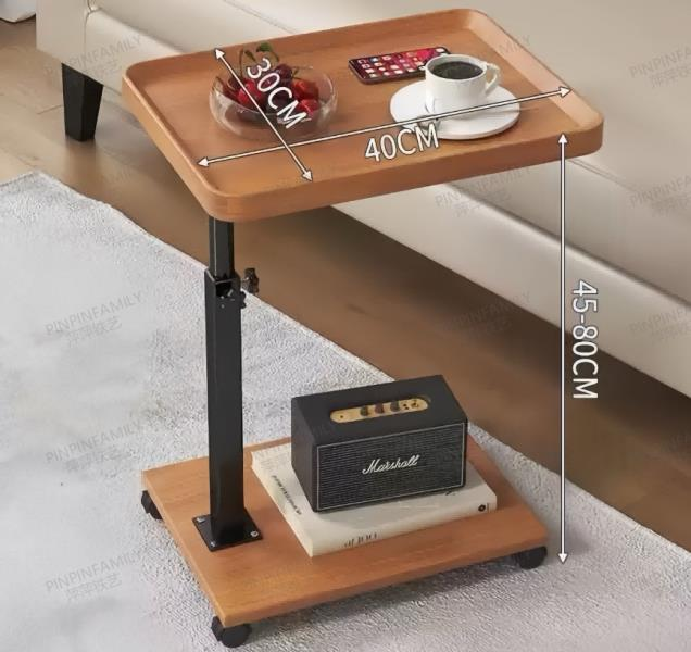 Adjustable Height Mobile Laptop Desk with Rolling Casters, Wood Grain Overbed Table for Sofa & Home Office