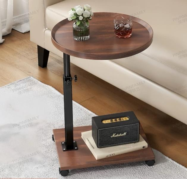 Adjustable Height C-Shaped Side Table with Rolling Wheels for Living Room & Bedroom