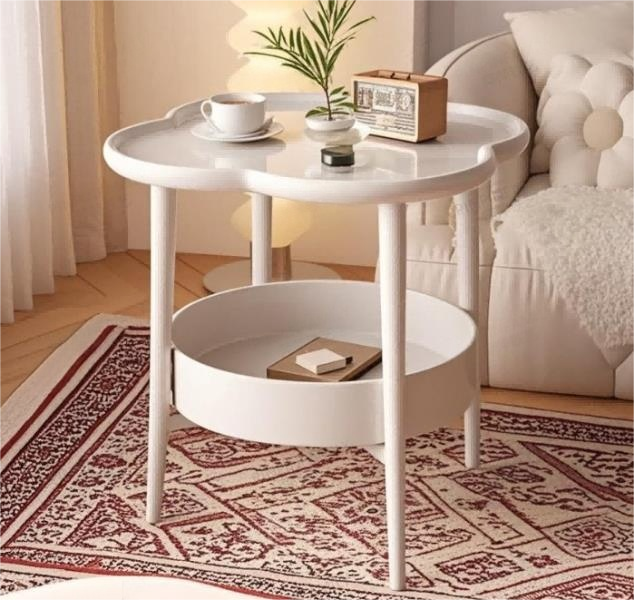 Aesthetic Flower-Shaped White Side Table | Modern 2-Tier Clover Top Accent Table for Living Room