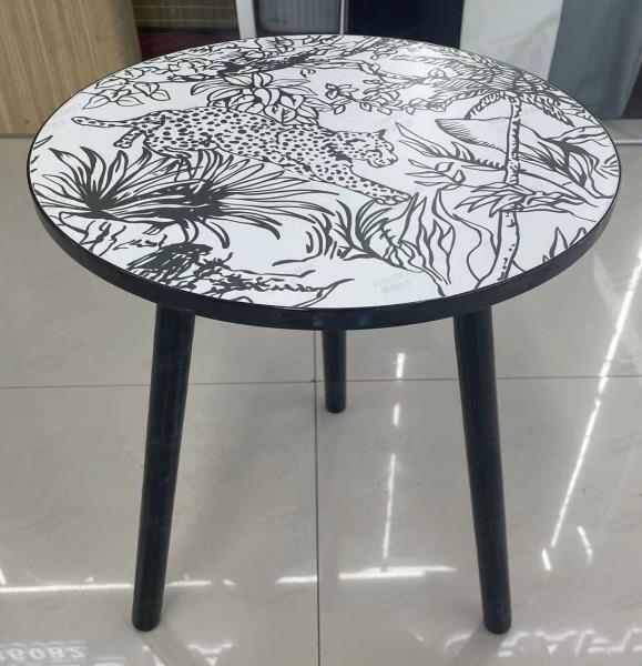 Black & White Leopard Jungle Print Round Side Table – Modern Accent End Table with Tripod Legs