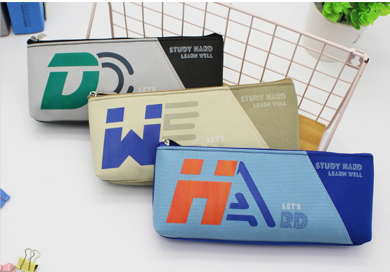 Oxford Fabric Pencil Case with Study Hard Slogan – Large Capacity Stationery Pouch for Students & Office