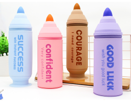 Kawaii Giant Highlighter Silicone Pencil Case – Cute Motivational Retractable Pen Holder for Students & Office