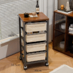 Be the first to review “4-Tier Mobile Storage Cart with Fabric Drawers and Wooden Top – Rolling Organizer for Home & Office”