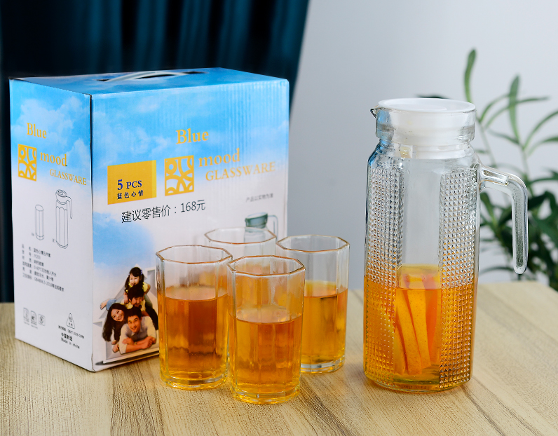 Add this essential glass pitcher and cups set to your kitchen and enjoy serving your drinks in a way that is both beautiful and practical.