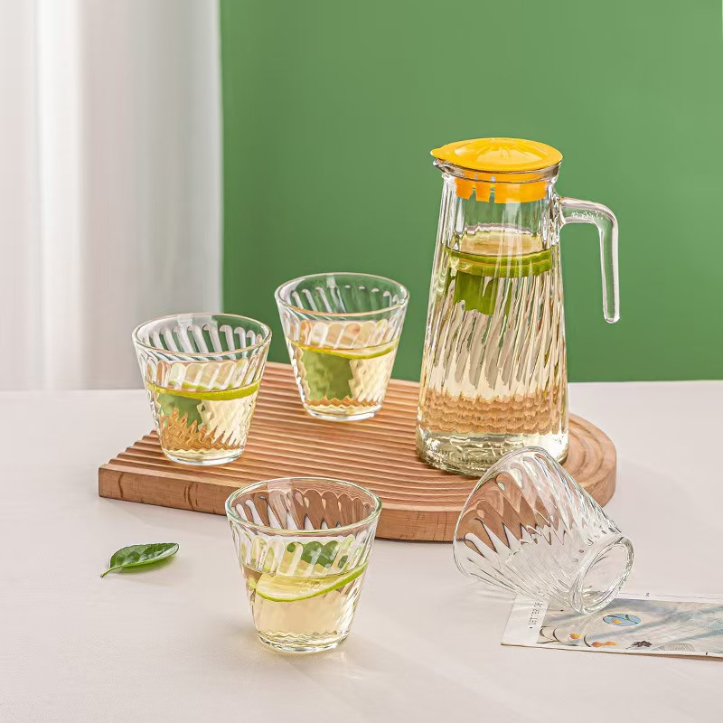 Add this essential glass pitcher and cups set to your home today and enjoy a blend of style and function.