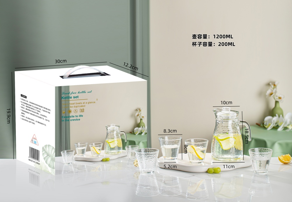 Made from high-quality, durable borosilicate glass, this drinkware set is ideal for serving cold beverages such as iced tea, lemonade, juice, or water. Its sleek and minimalist design makes it suitable for both everyday use and special occasions, from casual family dinners to more formal gatherings. The space-saving design and elegant aesthetic make it a great addition to your kitchen, dining room, or bar cart. This versatile and stylish glassware set is easy to clean and built to last, making it a must-have for any modern home.