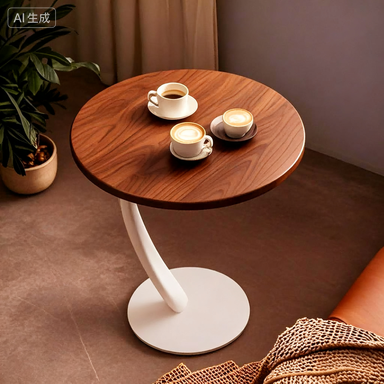 Minimalist Round Walnut Wood Coffee Table with Modern White Pedestal Base
