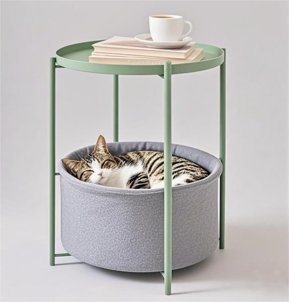 Mint Green Pet-Friendly Side Table – Modern End Table with Cat Bed