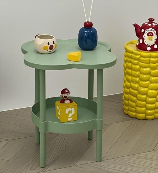 Mint Green Clover Flower Side Table – Danish Pastel Two-Tier Accent Nightstand for Aesthetic, Playful, and Boho Decor
