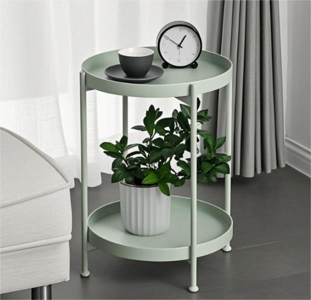 Mint Green 2-Tier Round Metal Side Table – Space-Saving Accent Table