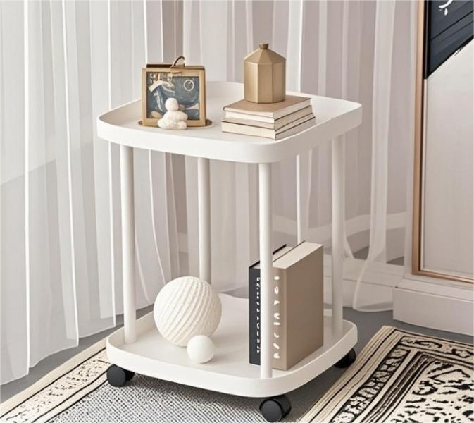 Modern 2-Tier Mobile Side Table – White Rolling End Table with Wheels